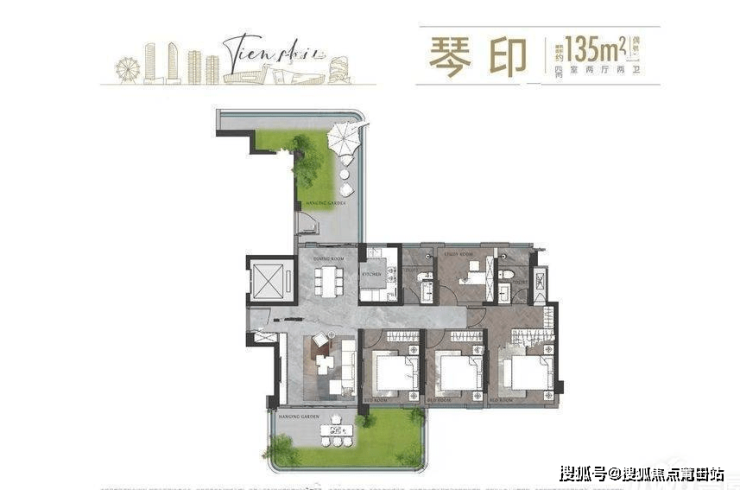 定制私人空中花园,层层叠翠,可打造茶室书房/私人高尔夫球场等爱好场域。