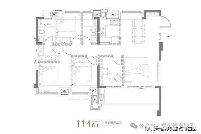 产品面积:114㎡四房/64套、129㎡四房/64套