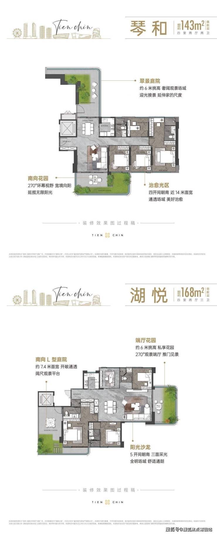 以居者志趣,高定空间格局,户户双庭院,空中花园演绎茶室/书房/私人高尔夫球场等私人场域。