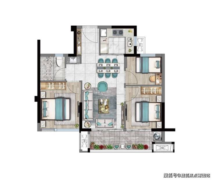 方正格局,动静分明,高空间利用率;大尺度套房式主卧,享独立全明盥洗室、衣帽间。