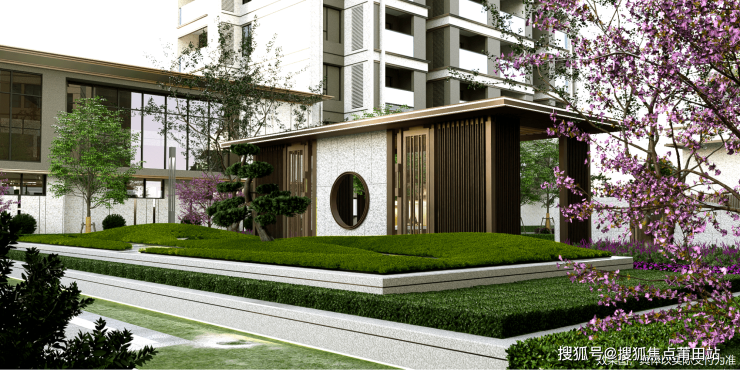 ◎全龄奢配:以一轴&一心&两环&多节点的布局设计,涵盖禅意的景观花池、休闲的中心廊架、阳光休闲草坪、中式屏风景墙、童趣乐园以及休闲跑道等。