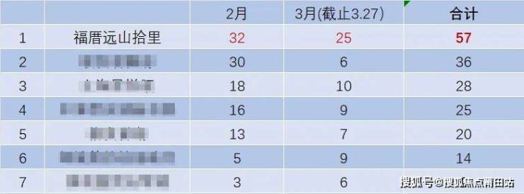 福州东区板块部分新盘2月至今成交套数一览
