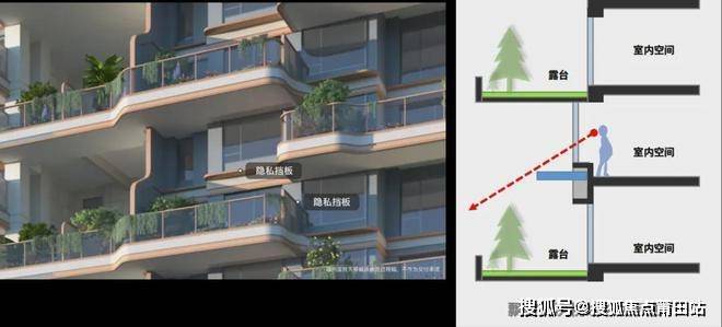为了保障居家隐私,国贸天琴樾在空中花园采用了极具美学感的隐私挡板。这一设计巧妙地避免了家庭之间的对视,确保了每个家庭都能享受到静谧的居住环境。