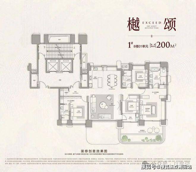 •主打建面约198-575㎡大平层及复式产品,均为第四代生态住宅,户户配置空中花园或露台,部分户型赠送6.8%-20%的露台面积;