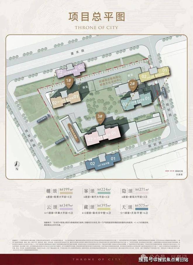•总户数:约205户,规划3栋35-44层超高层住宅,1号楼高35层,2号与3号楼均为44层,实行“一梯一户”设计,部分为一梯两户,保障居住私密性;社区内部打造“山海十二景”立体景观,空间规划注重采光与视野;容积率:2.52,绿化率暂无明确数据,车位配比:暂无公开明确数据;
