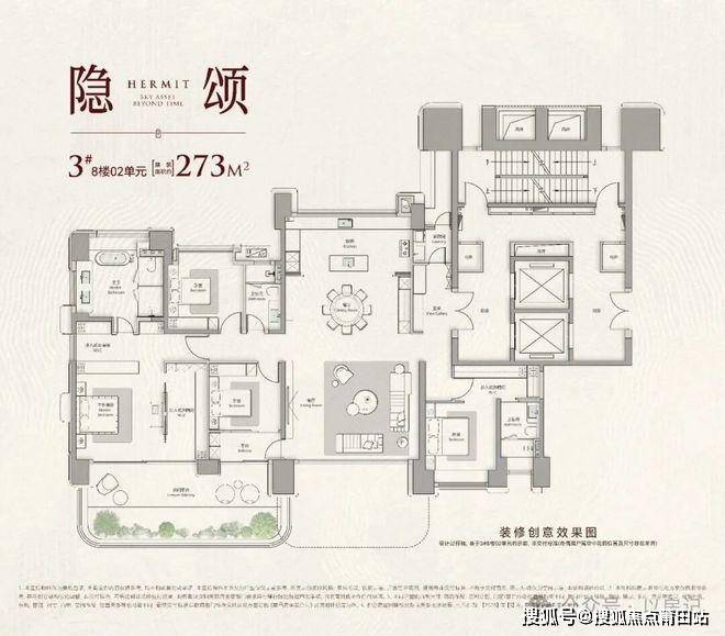•天际平墅:575㎡户型为5+1居室,配备挑高6米客厅、独立电梯厅与错层露台,打造“垂直森林”式空中院墅。