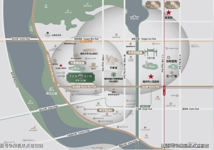 项目位于鼓楼西区,闽北CBD距离1公里,西禅寺、山姆、万象城商圈800米,距离江滨450米,周边即福大创意园。