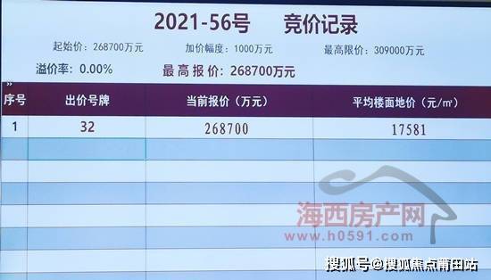 其中,位于南二环白湖北园周边旧改片区的“宗地2021-56号地块”,仅经过一轮竞价,由32号竞买人福建榕发置地有限公司以底价26.87亿竞得,楼面地价17581元/㎡。