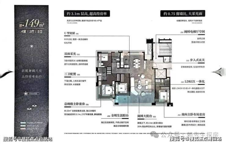 • 景观视野优越:149㎡户型设计270°转角飘窗,采光与视野俱佳;