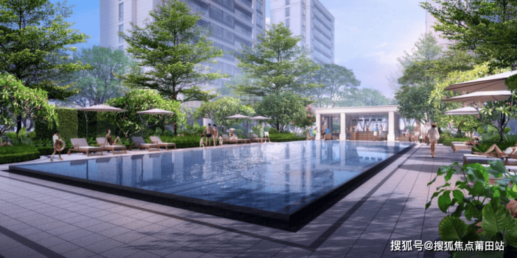 中心泳池为整个园区景观的核心,在主轴中依次布置共享大堂,中心泳池,睦邻花园等功能区,其他景观区围绕主轴展开,庄重大气,更体现静谧及亲切感。