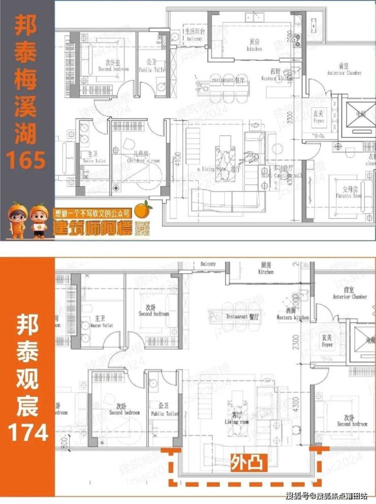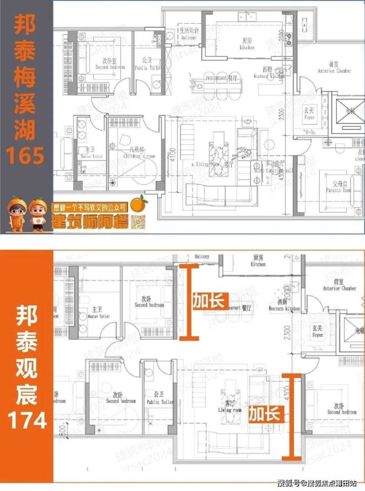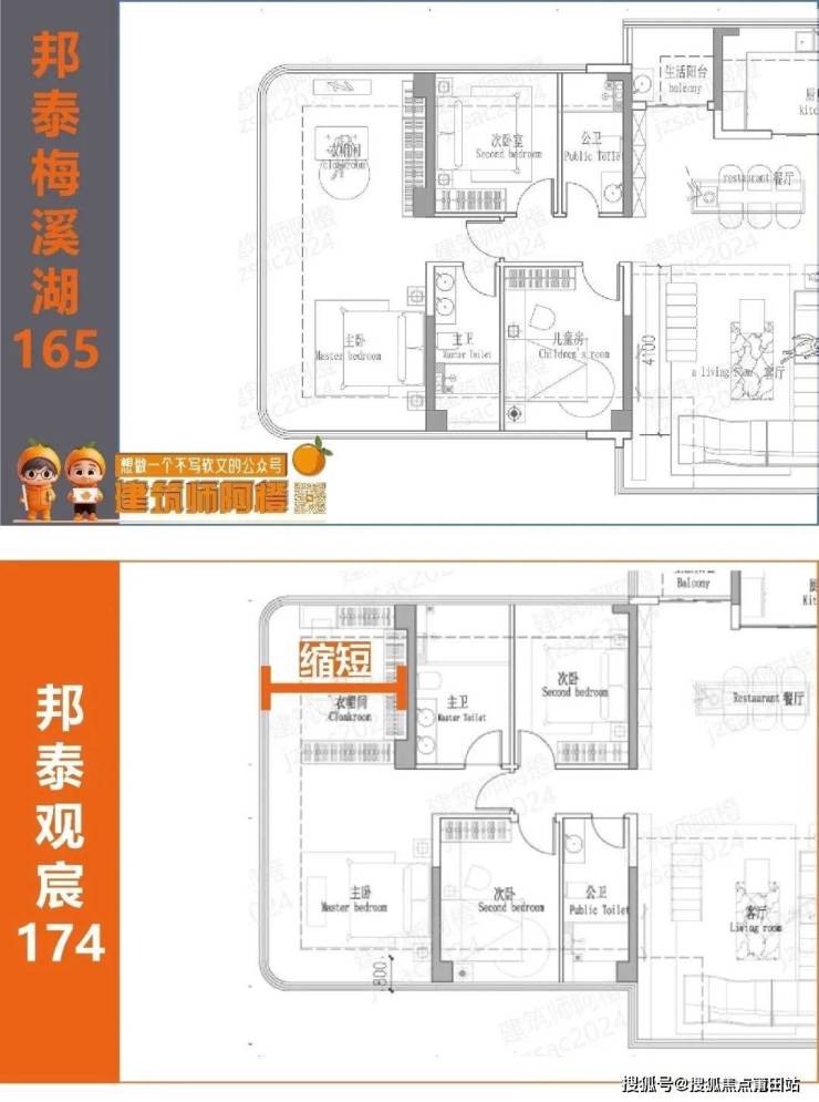 这个户型,阿橙认为在邦泰璟和(梅溪湖地块)的165的基础上,改进了不少小毛病。