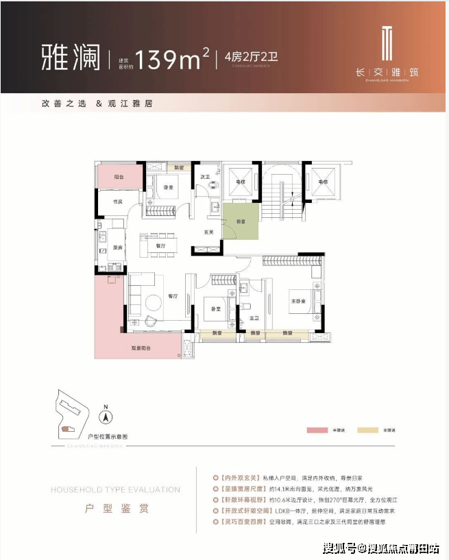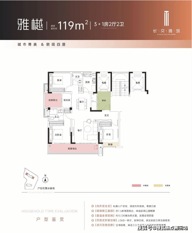 得益于低密, 每款户型得房率均高达95%以上,全四房设计,户户带独立电梯前厅。