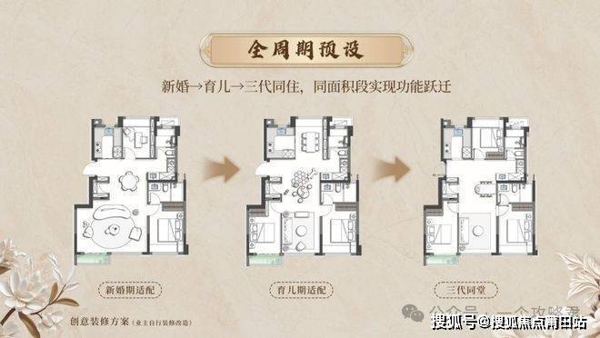 【新婚二人期】可将邻厅次卧改为阔绰宽厅,满足二人世界、会客接待、居家健身、办公等功能。