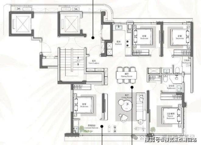 类四叶草户型虽节省过道面积但导致餐厅在户型中心,交叉动线。