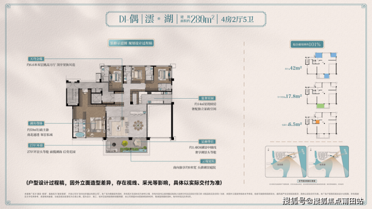 产品:建面约139-181㎡四代宅、约280-389㎡环湖空中院(一线湖景、客厅挑高6.6米)、约280-530㎡传世湖院。
