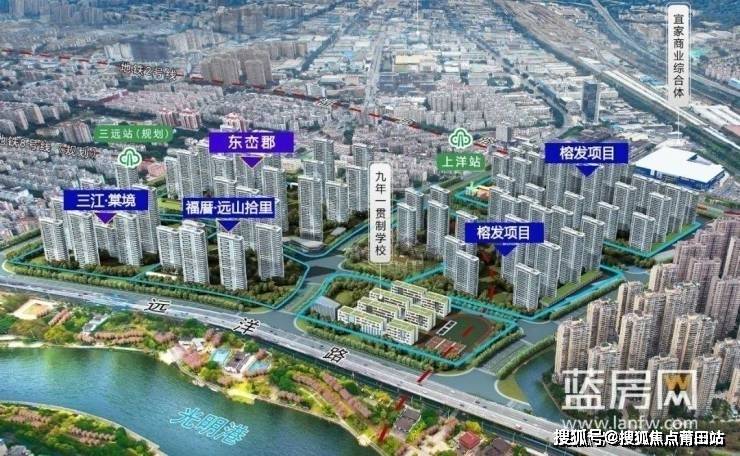 新投三江棠境南侧是光明港及光明港公园,部分楼栋具有良好的面河景观,周边生活配套有宜家商业综合体、光明港温泉水乐园(在建)、格致中学鼓山校区、鼓山苑小学、市一医院鼓山院区(规划)等。此外三远片区内还规划商业、九年一贯制中小学及2所12班幼儿园