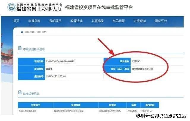 该项目报建编号3501042501270101,项目(法人)单位为福州地铁置业有限公司。备案号为闽发改备[2025]A030012。主管部门为福州市仓山区发展和改革局;结果显示为办结(通过)。