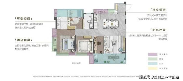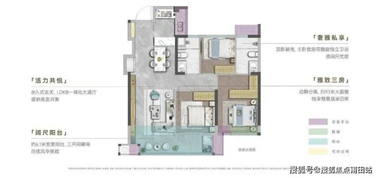 榕发·城启未来的起步产品,面积约89㎡,9.1米超大面宽,主卧自带独立卫浴。