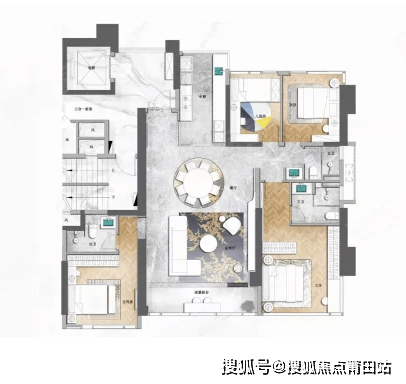 归家动线:打造了六进归家礼序,一进云檐鎏金,二进落客庭院,三进礼宾大堂,四进琉璃织澜,五进盘金云峡,六进归家花园,营造由喧至静的情绪切换。