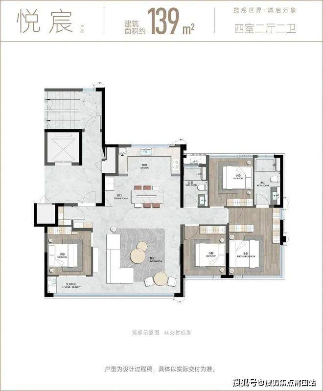 其中168㎡户型采用双主卧套房设计,配备独立电梯厅,私密性与舒适性兼具。
