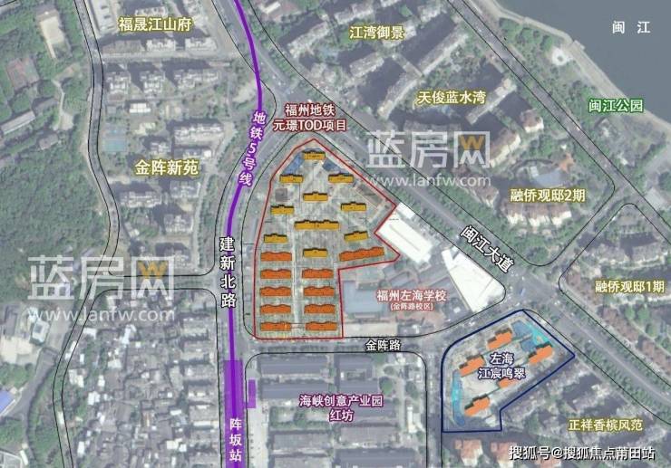福州元璟TOD项目位于仓山区建新北路与闽江大道交叉口南侧,周边配套情况如下