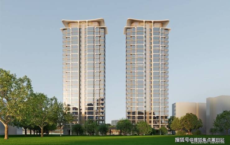 鎏金先锋地标 | 高定玻璃幕墙工艺与香槟金铝板,勾勒水岸上的天幕曲面坐标,成为极具辨识度的滨水图腾。建筑轮廓随水波起伏,立面肌理呼应潮汐韵律,让家的每一面都是流动的城市风景线。