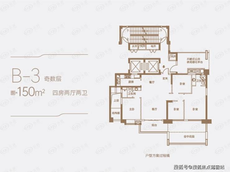户型直接影响居住体验,较好的采光、通风、较短的归家活动动线,动静分区,都将提升居家生活体验。如下图B-3户型
