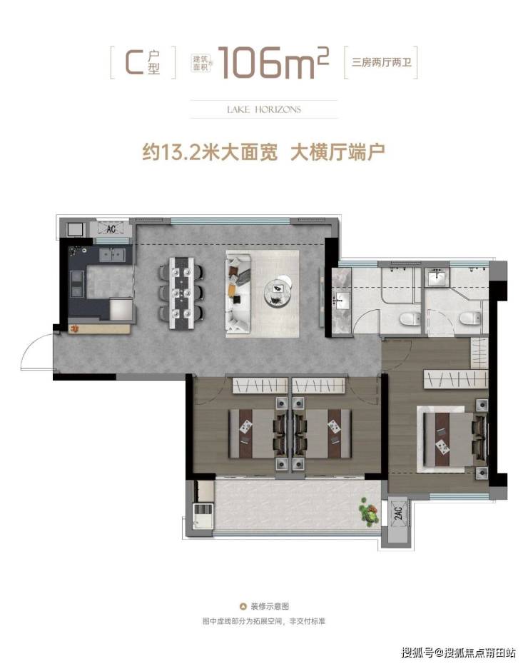 双套房设计(主卧+次卧均带独立卫浴)