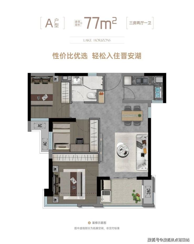 (1)77㎡两房: