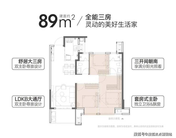 89㎡三房两卫户型在同等面积段内实现双卫功能,极大提升小户型家庭居住舒适度和实用性,是市场上极具竞争力的稀缺产品。