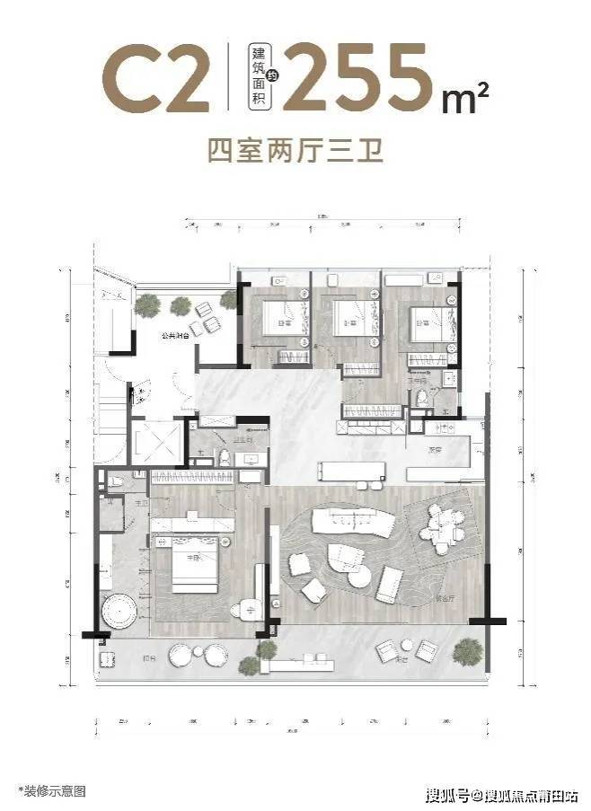 项目根据景观资源分布差异设置建面143㎡、191㎡、255㎡为-主力户型,岛头位置楼王面积段为319㎡,343㎡,顶层设置两户489㎡奢阔艺术豪宅。户型设计采用私梯入户、阳光电梯厅、入户花园、社交厨房、灵动宽厅,甲板阳台、奢阔主卧套、X空间、舒居次卧的设计理念。