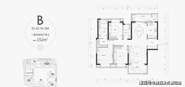 2梯3户,大面宽短进深,多重阳台、飘窗设计,超高得房率。3.3米奢适层高,最小户型亦配置套房,以大尺度营造舒适度。