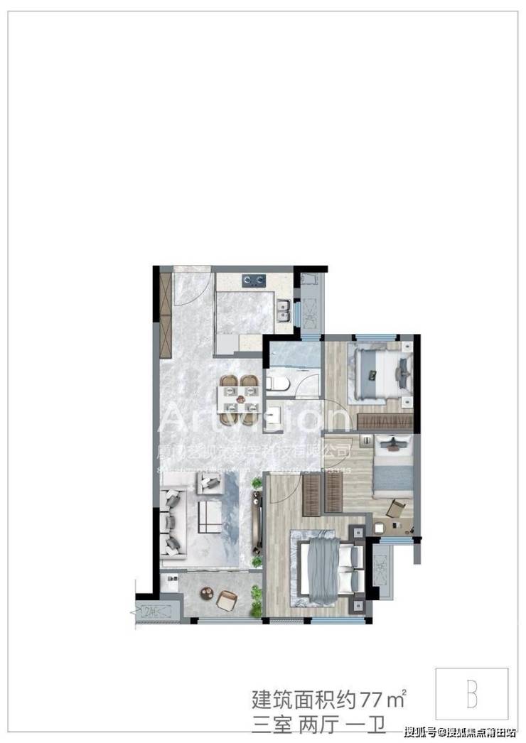大面宽,短进深,0浪费空间;独立玄关、U型厨房设计,收藏全家人的生活梦想