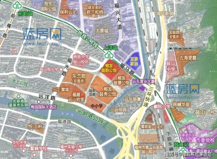 项目位于晋安东区三远片区,是福州市近年启动的连片旧屋区改造重点项目。片区交通配套成熟,北侧是地铁2号线上洋站,地铁8号线拟从片区内部穿过并设置三远站(以实际批复为准)。