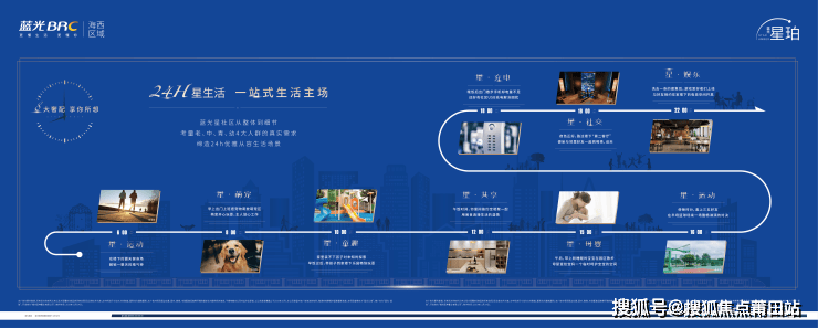 <项目自身配套>社区内贴心定制星·运动、行·社交、星·视界、星·共享、星·娱乐、星·童趣、星·母婴、星·萌宠8大星生活空间,满足城市菁英阶层对生活的不同需求。