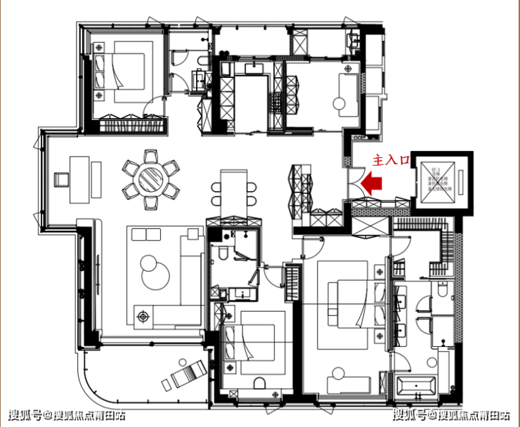 【4】奢华户型设计:85㎡社交化客餐厅、归家礼仪轴线、专梯入户、8.3米超面宽阳台、7米面宽旭格提升推拉门、全套间设计