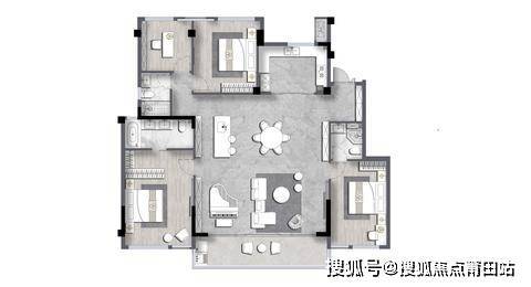 洋房户型:有 156㎡、175㎡两种,均为四房设计,三开间朝南,客餐厅一体化,空间宽敞。