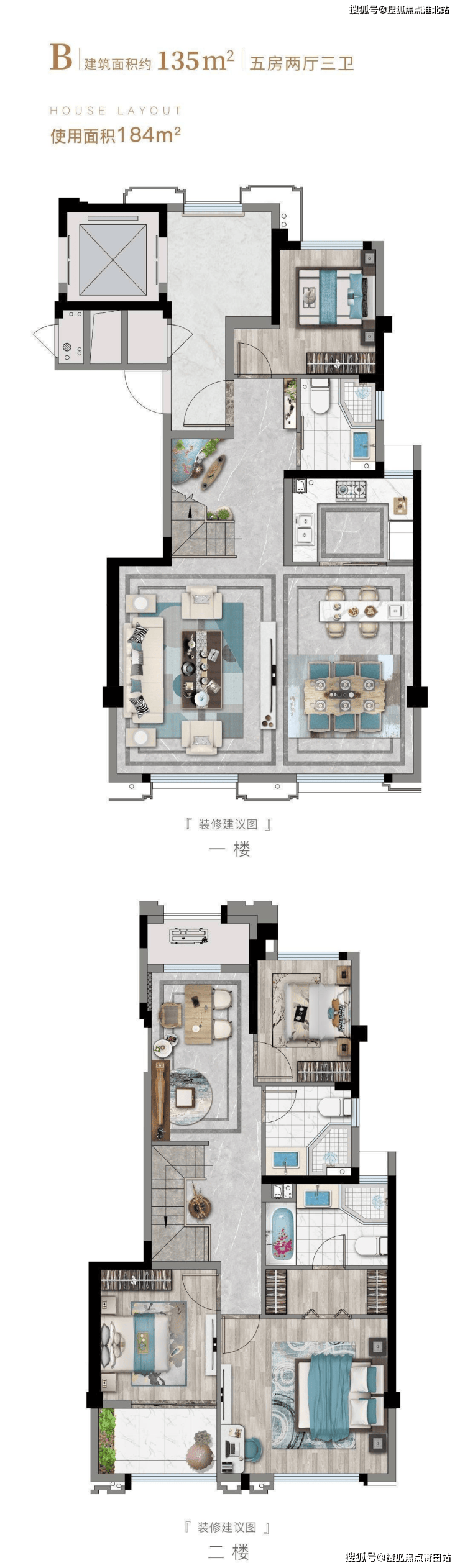 多功能大五房:精研全龄段生活需求,多功能分区,打造各具特色的私密生活空间;
