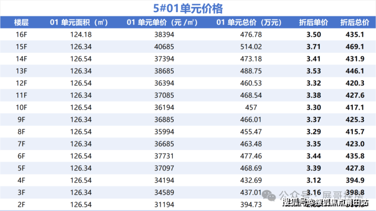 中低楼层(5-10F):折后单价 3.4 万 - 3.6 万 /㎡,总价 428.4 万 - 453.6 万。