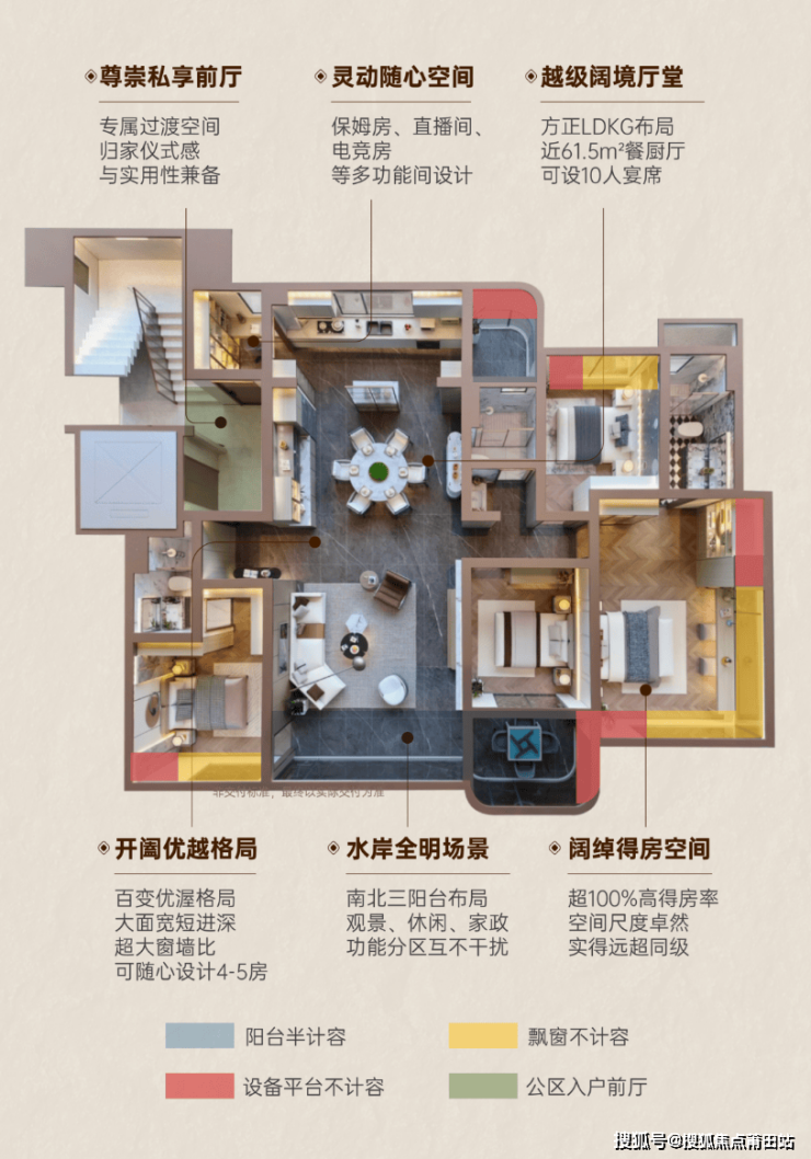 •得房率超百,4房3卫,空间利用无浪费