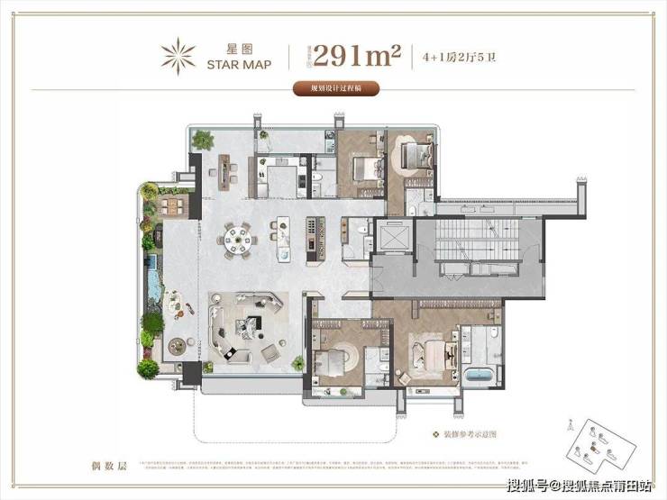 该户型建面约291㎡,实际可用面积达约316㎡,相当于传统住宅约390㎡居住体验。