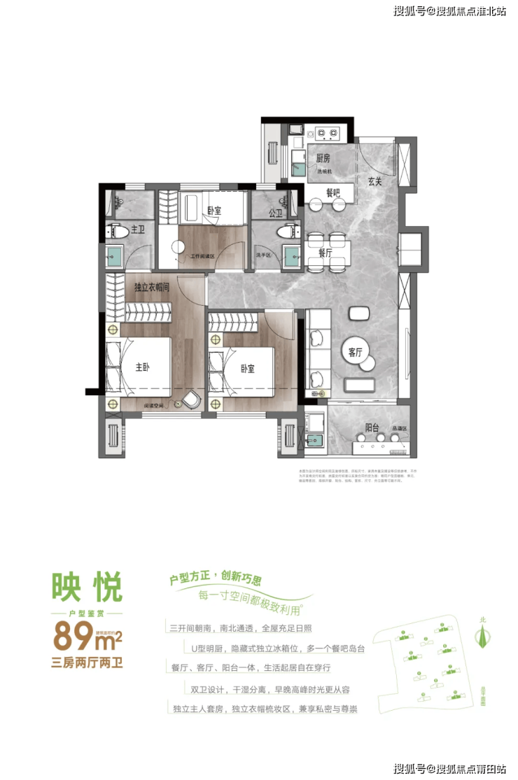 新投·映南台在户型设计上同样下足了功夫。项目提供多种户型选择,以满足不同客户的需求。起步户型约89㎡的三房设计,不仅得房率高,还特别在客厅安排了专有的冰箱位,为厨房预留了更充分的烹饪空间。