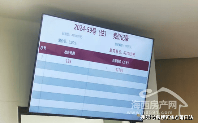 2024年11月15日,经过1轮竞价,159号竞买人福州建工福厝置业有限责任公司以4.27亿竞得福州宗地2024-59号,楼面地价14132.98元/㎡。