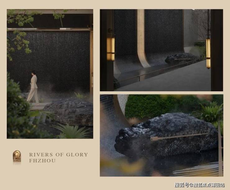 廊回水绕,浮光跃金,整个三进水院空间,营造着漫步归家亲水体验及水林交融洽谈氛围,成就了未来高品质人居生活的典范。