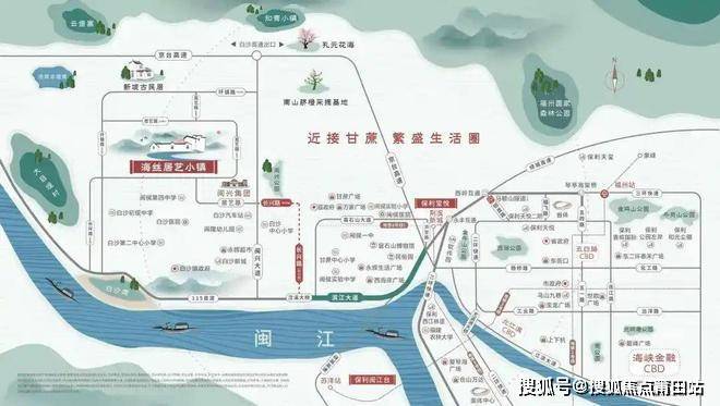 小镇周边有滨江大道、绕城高速、地铁5号线-荆溪新城站(在建)等交通资源拱卫,便捷通达全城。同时,小镇近接鼓楼西,揽获市中心商圈配套辐射,承接市中心外溢优质资源,为福州生活圈建设添砖加瓦,成为即时可达的城市侧翼,未来价值,不可估量。