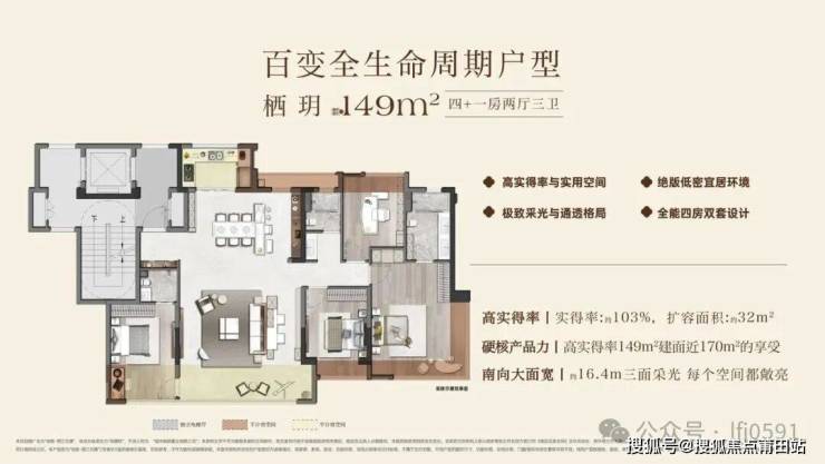 栖江元璟北面十栋楼为洋房户型,建面约125和149平米两种户型,都有很高的得房率;