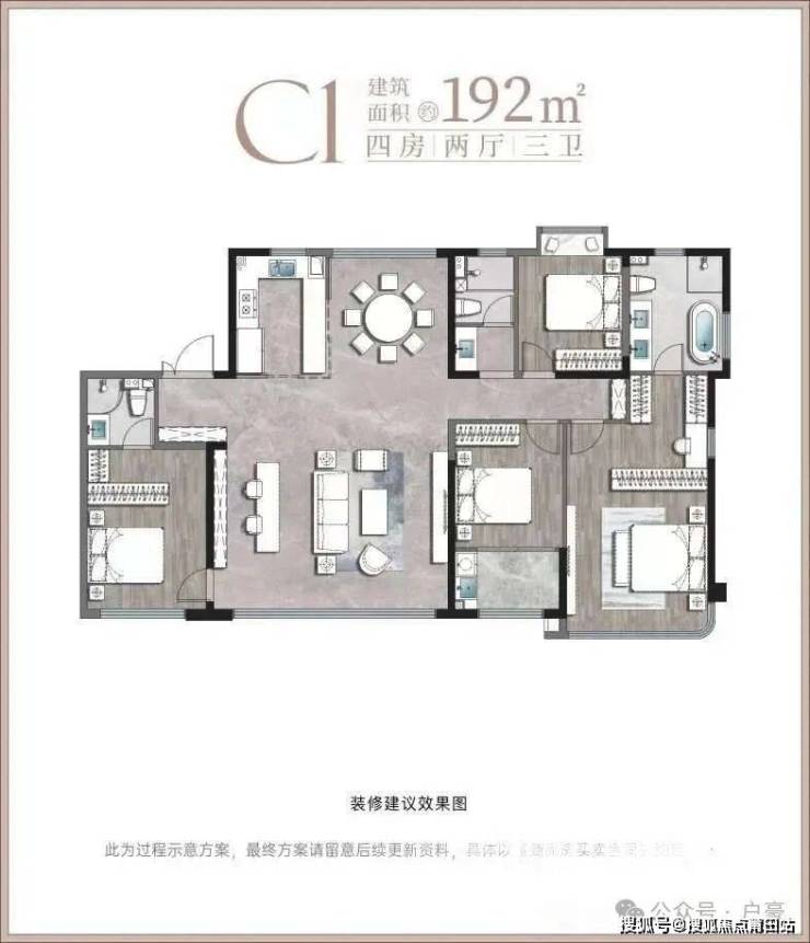 四居室113-194㎡ 南向5开间朝南,零浪费空间(如115㎡四房),全明格局,主卧飘窗 ;