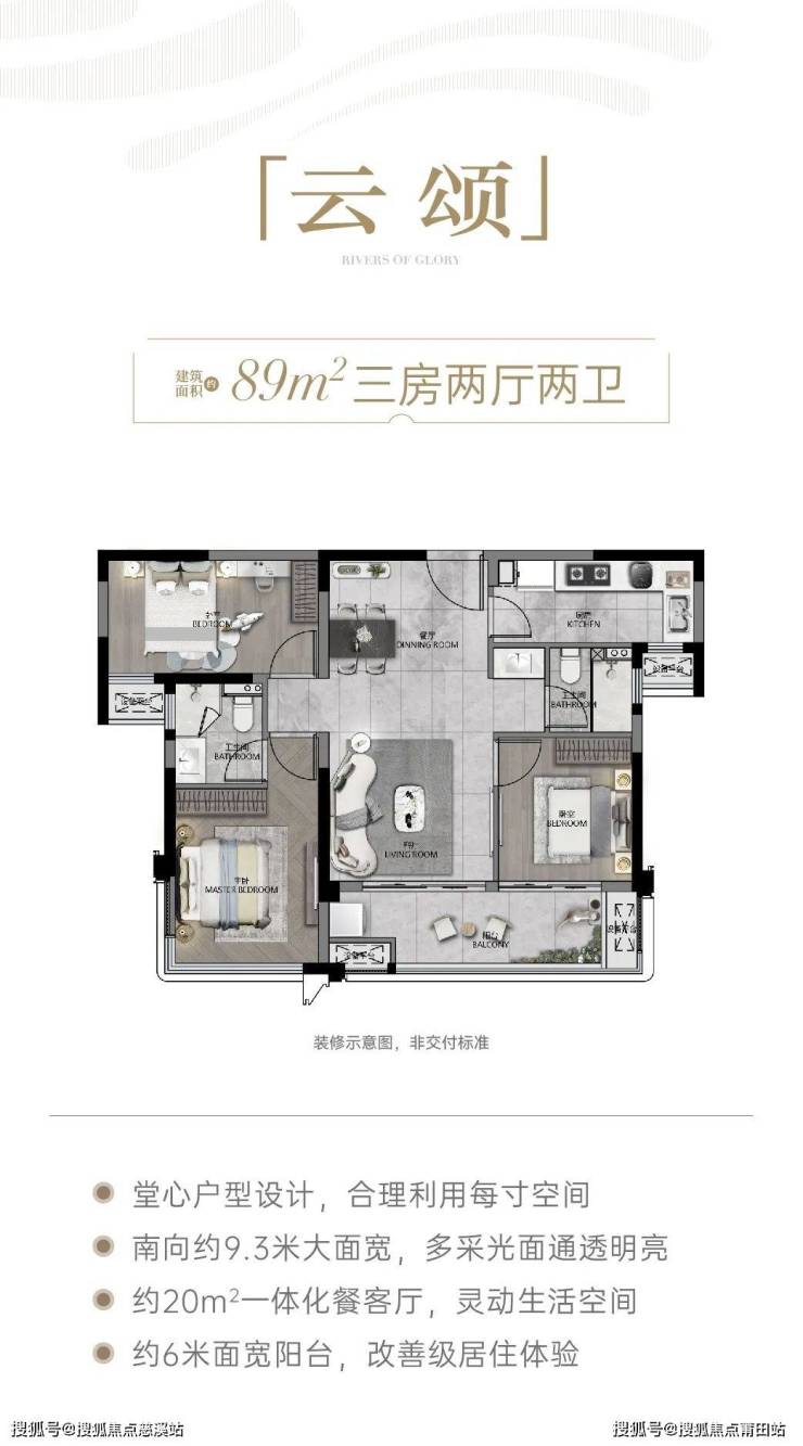 榕发•云潮颂”规划了一系列容积率仅1.8、面积介于89至160平方米之间的江景大平层住宅。在住宅配置上采用了1梯1户的尊享设计,户型南北通透,空间实用率高。特别是160平方米的户型,拥有约11米的壮阔江景视野,并配备了南向约9.5米的宽敞阳台,为居住者提供了更具舒适性和私密性的生活体验。