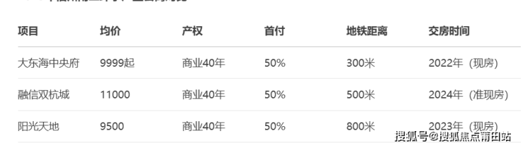 与周边竞品相比,大东海中央府的优势在于地铁近、总价低,但商业产权(40年)和首付比例是硬伤。