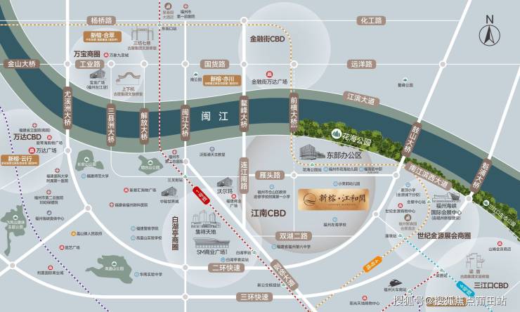 位居南江滨CBD核心腹地,东有海峡国际会展中心-世纪金源购物中心集群配套在侧,西临SM广场(在建)-集祥天地核芯商圈,北岸金融街万达商圈覆盖,全维商圈环覆半径皆繁华。